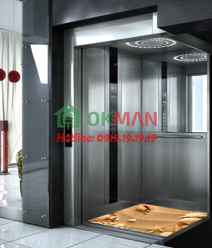 Mẫu thang máy tiết kiệm diện tích gia đình, cửa mở lùa về một phía (lùa trái hoặc lùa phải)